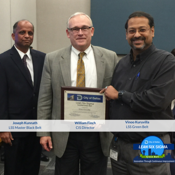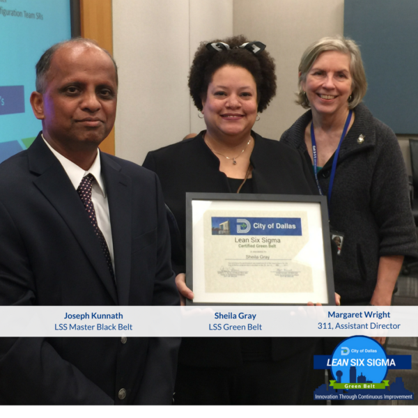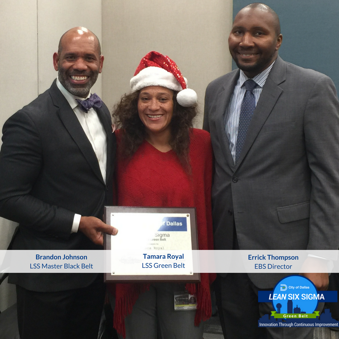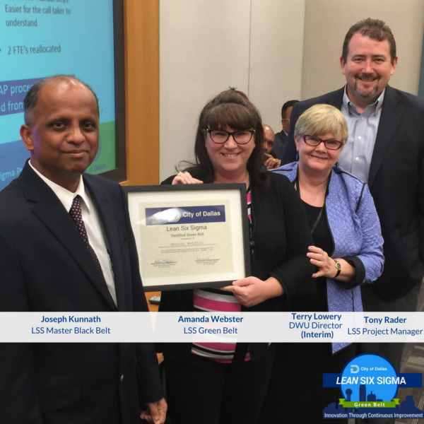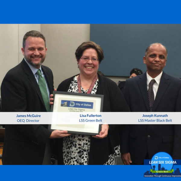 Seven City of Dallas employees saved the City time and taxpayer money while adding to their professional toolkits. The Lean Six Sigma “Green Belt” trainees presented projects designed to save money and work out inefficiencies to Executive Staff.