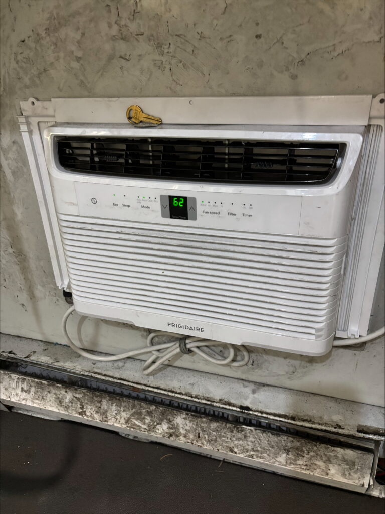 Security guard Emilio Valentin (left) said he’s thankful for the new air conditioner.