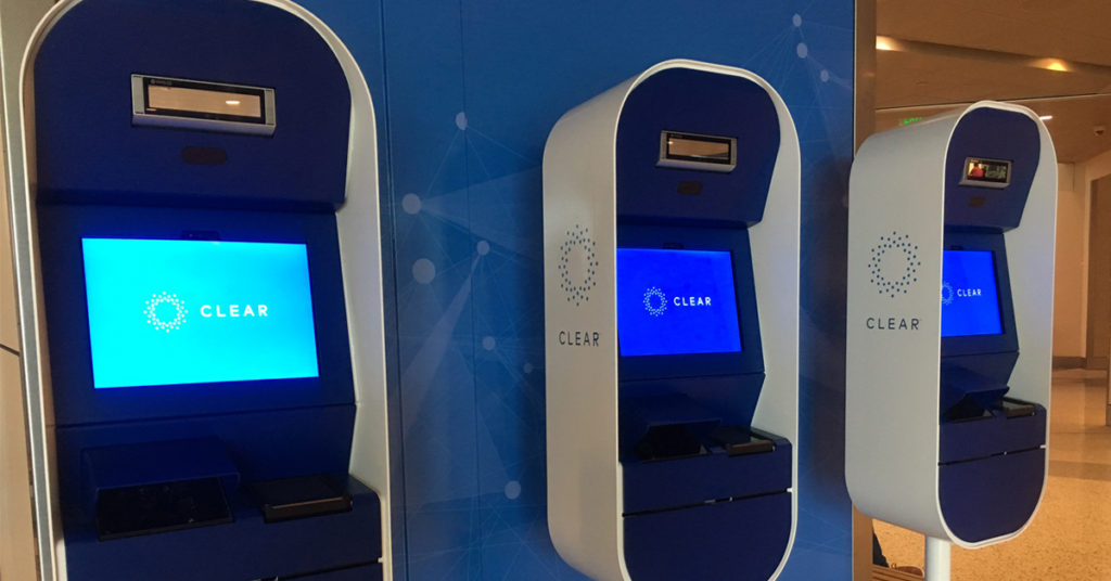 CLEAR uses biometric technology to link passengers’ travel information to their fingerprint or eye scan, allowing them to skip the boarding pass line and straight to TSA screening.