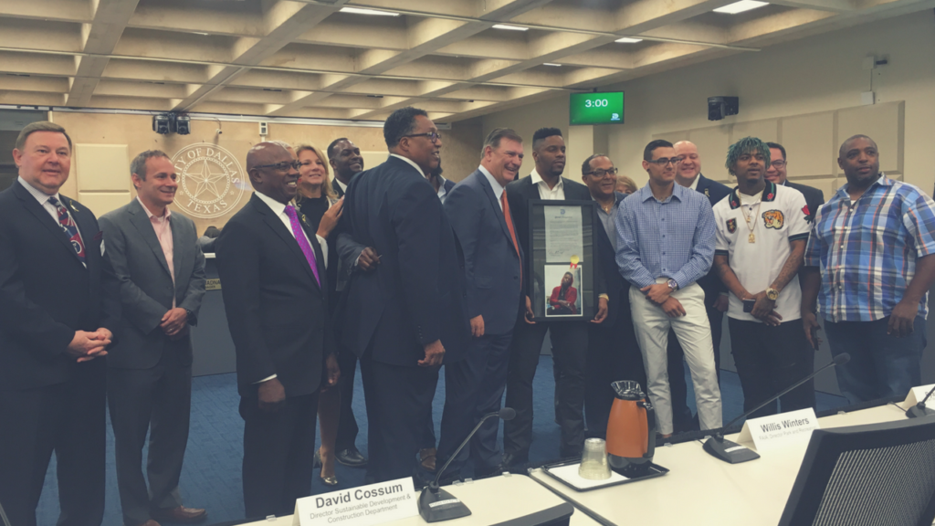 Dallas native and Lancaster High School graduate Dorwin Demarcus Dorrough was honored by Dallas Mayor Pro Tem Dwaine Caraway during today’s City Council Briefing. Mayor Pro Tem Caraway played a video clip to introduce the rapper before presenting him with a Special Recognition and proclaimed July 28, 2018 to be Dorrough Music Day in Dallas.