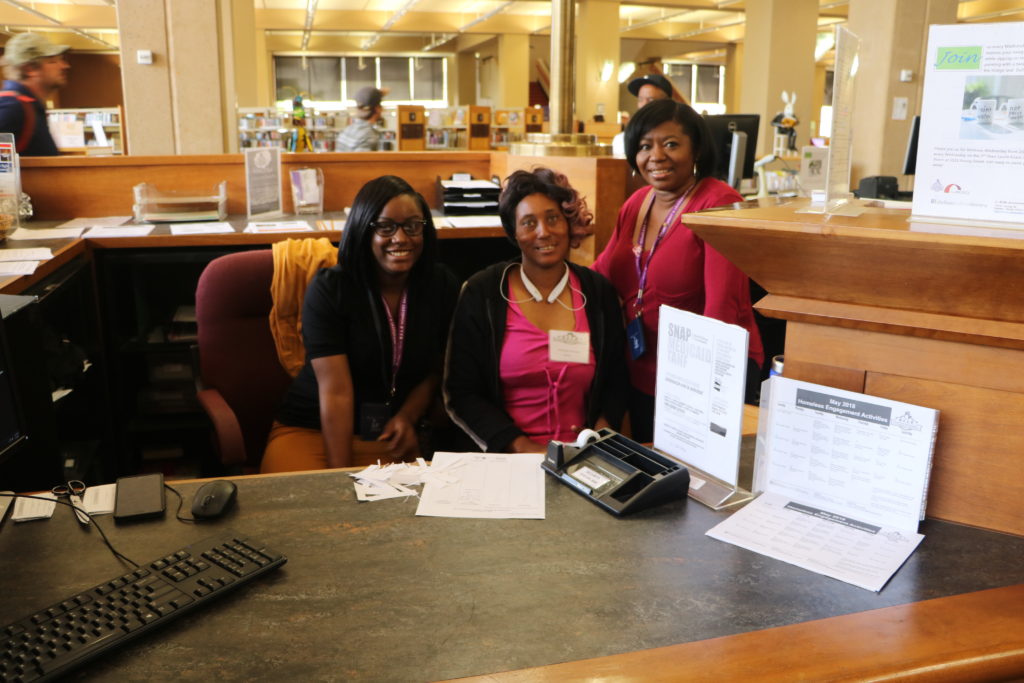 Glover is also connecting every day with regular patrons at the Downtown Library. About two months ago, she started a volunteer program, now consisting of four people who are currently experiencing homelessness, who work the Help Desk and assist with some of the Homeless Engagement programs.