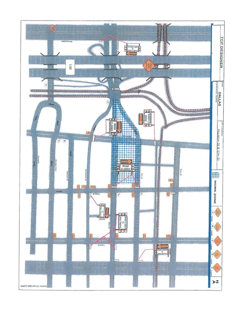 Below is a list of street closures surrounding Dealey Plaza regarding the Warner Brothers filming of a mini series.
