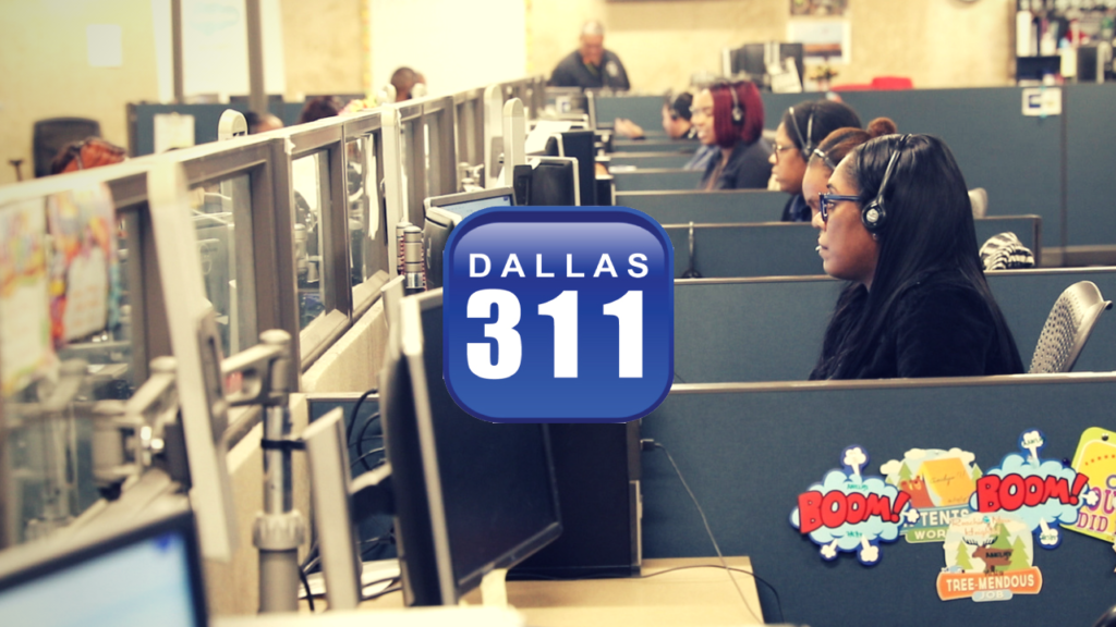 Dallas 311 is used to receive calls from residents, actively listen to their concerns and, based upon their situation, determine which service request(s) would best suit their needs. To learn more about Dallas 311 click here.