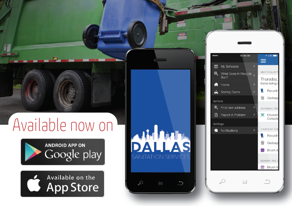 The City of Dallas Sanitation Services is launching a new mobile app that will make it easier for residents to find their collection schedules and sign up for reminders. The app is a free download on all Apple and Android mobile devices.