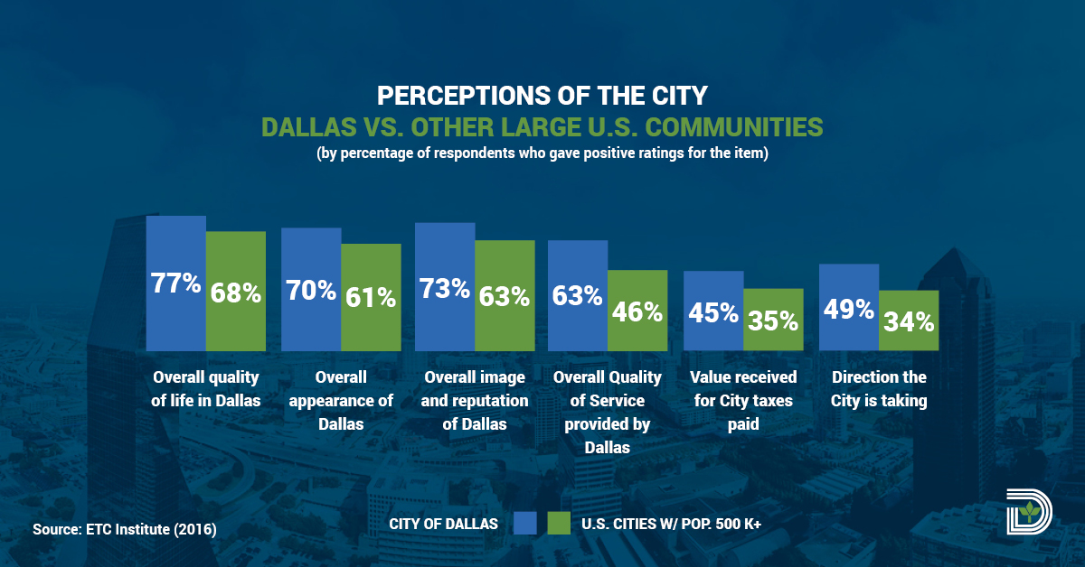 The 2016 Community Survey shows that Dallas is setting the standard for customer service among large cities across the country.