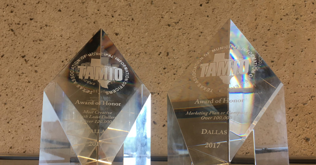 The City of Dallas Public Information Office was awarded by the Texas Association of Municipal Information Officers (TAMIO) for a