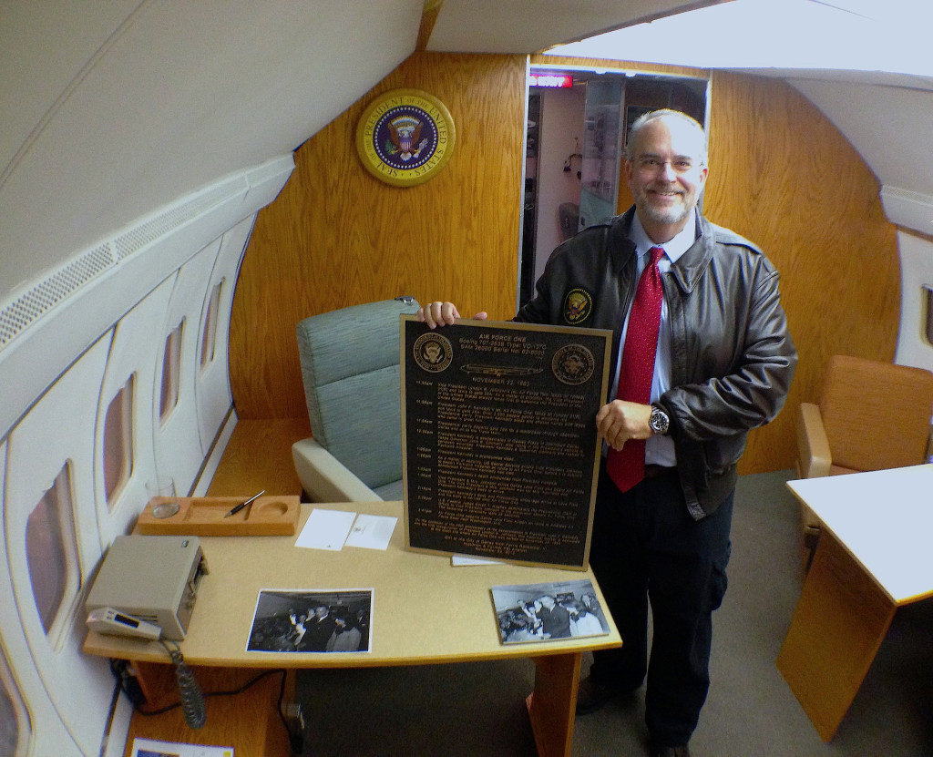 A bronze marker indicating the location where Vice President Lyndon B. Johnson took the oath of office to become the […]